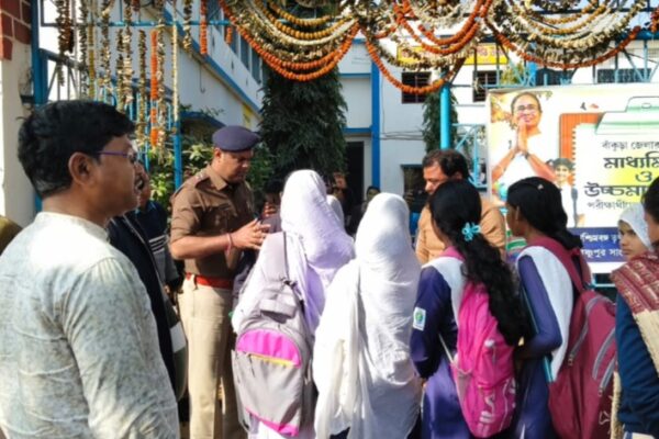 মানবিক মুখ বাঁকুড়া জেলা পুলিশের: মাধ্যমিক পরীক্ষার্থীদের পাশে জয়পুর থানার ওসি।