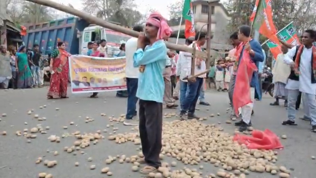 আলুর ন্যায্য দামের দাবিতে গোয়ালতোড়ে বিজেপির বিক্ষোভ মিছিল।