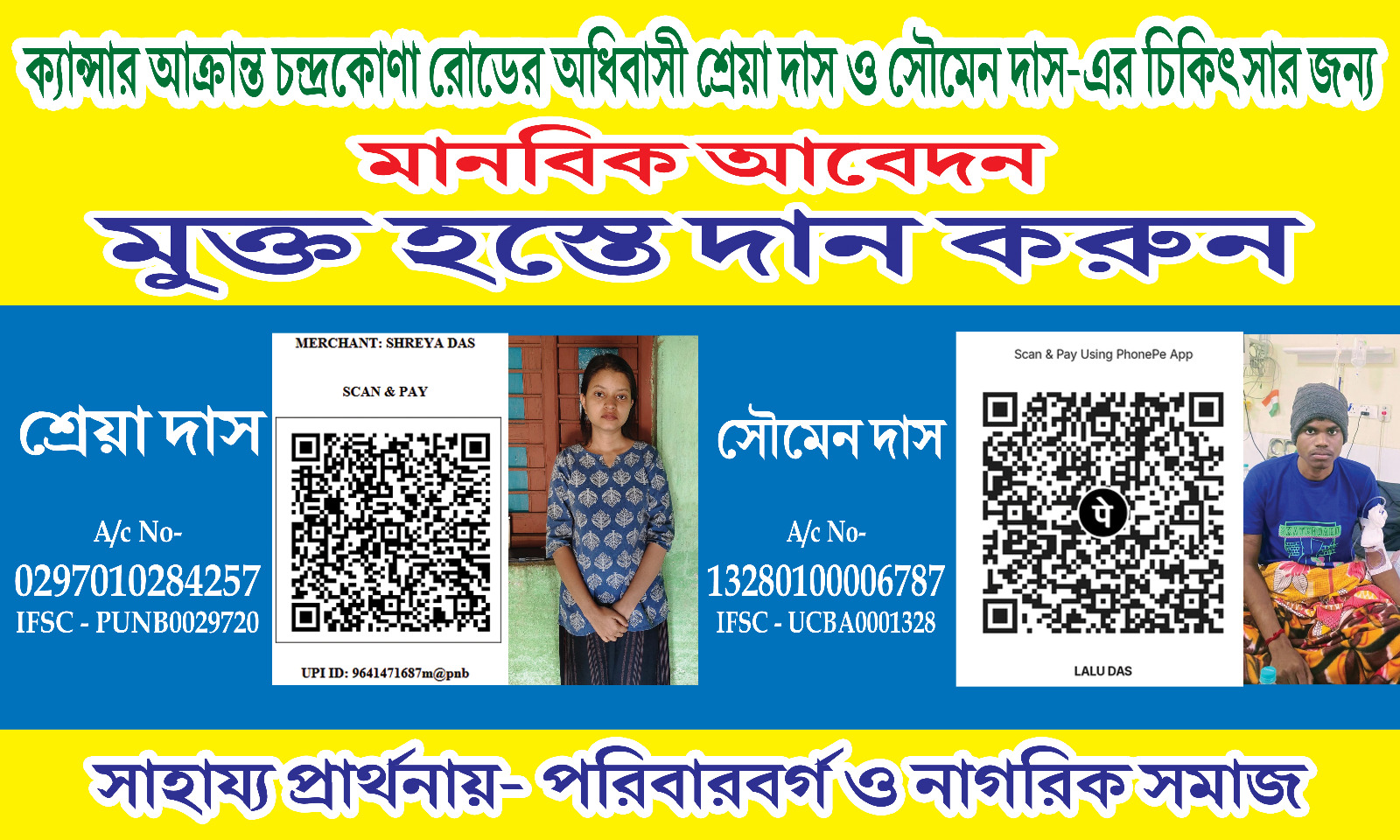 ক্যান্সার রোগে আক্রান্ত দুই জনের চিকিৎসার উদ্দেশ্যে চন্দ্রকোনারোডে অর্থ সংগ্রহ যুবকদের।