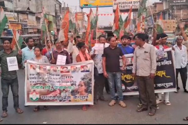 ফালাকাটা ব্লকের জটেশ্বরে বিক্ষোভ মিছিলের বের করা হয়।