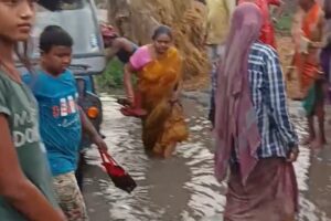 মালদার মানিকচকের বাকিপুর শ্যামসুন্দরী এলাকায় রাস্তার কাজ বন্ধ করে বিক্ষোভ দেখালেন গ্রামবাসীরা